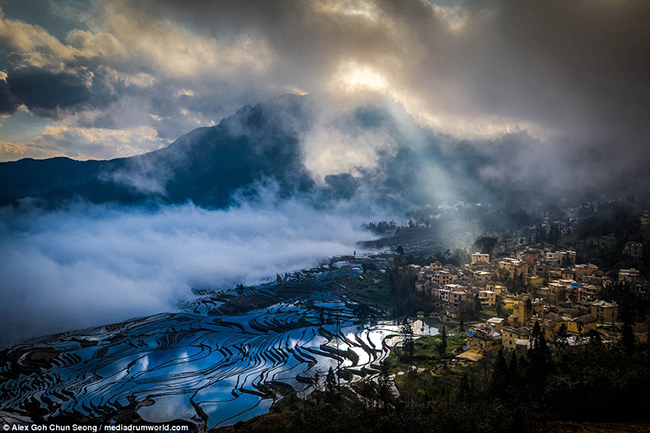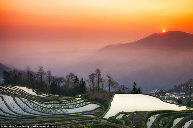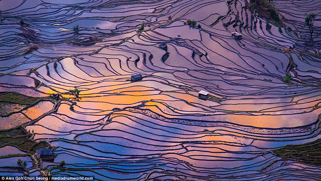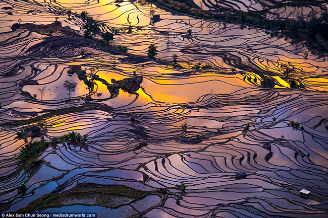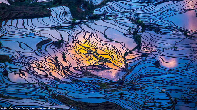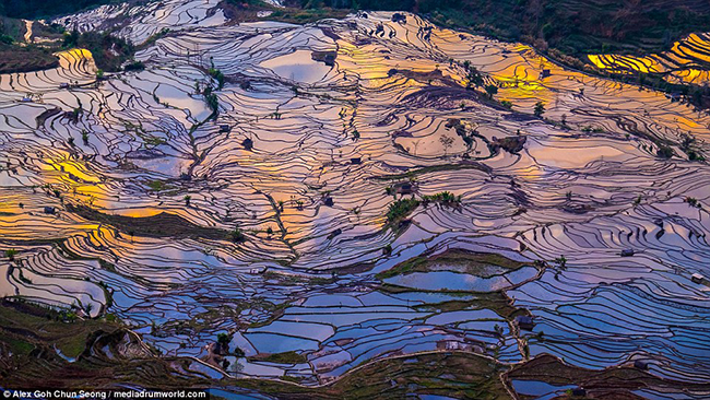 एक मलेसियन फोटोग्राफरले चीनको युनानस्थित युआनयांगमा यस्तै धानखेतका मनमोहक तस्वीर क्यामरामा कैद गरेका छन् ।